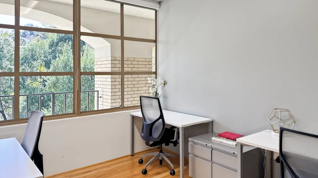 Let’s talk LOCATION. Calabasas, CA is a little gem in the suburban hills of Los Angeles. Across the street, The Commons shopping center provides you endless opportunities for shopping, dining, and entertainment. Minutes away are restaurants that have been popularized by some famous regulars. Hit up Marmalade Cafe, Sugarfish, or Shibuya for lunch and maybe run into a Kardashian or Jenner. But be prepared for cameras! A short drive away from Malibu (with the killer views), this Calabasas office space for lease has direct access to the US-101 freeway that can take you directly to Downtown LA and surrounding cities. Head south to the iconic Pacific Coast Highway that will give you breathtaking views in any direction you head. The Getty Villa is close by to offer you creative inspo – take in the collections of timeless art and culture from ancient civilizations. For the travelers and visiting guests, the Hollywood Burbank Airport and Los Angeles International Airport are within 30 miles.